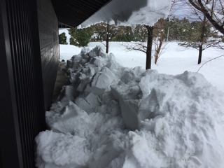 屋根から落ちた雪の量が今回の大雪の大きさを示していますね。